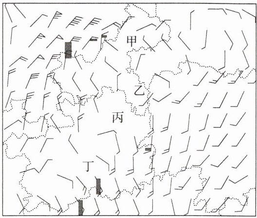 4.B 解析 由材料可知,低涡中心为低压涡旋,水平方向气流向中心辐合;根据图中的风向可判断出,乙处气流向中心辐合,最可能是低涡中心,B项正确;甲东南方向气流向南辐散,A项错误;丙地东北方向气流向东北方向辐散,C项错误;丁西部气流向西南辐散,D项错误。故选B。5.C 解析 根据图中的风向可判断,低涡中心位于乙地;根据图中省区轮廓可判断出贵州省位于低涡中心的西南方向,只有少部分地区为东北风,A项错误;由材料可知,低涡为低压涡旋,水平方向气流向中心辐合,垂直方向为上升气流,多阴雨天气,昼夜温差变小,B项错误,C项正确;由材料可知,此时为5月22日,气温较高,不可能出现冻雨灾害,D项错误。故选C。