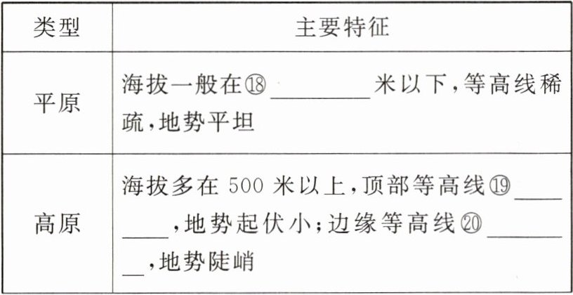 1. 等高线:在地图上把海拔⑤_______的点连接而成的线。