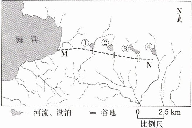 。据此完成(1)~(2)题。(1) 推测①②③的湖泊类型、湖水主要输出方式分别为(