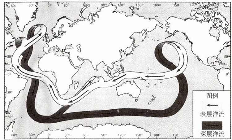 )①净热量向北输送 ②深层海水流速较慢