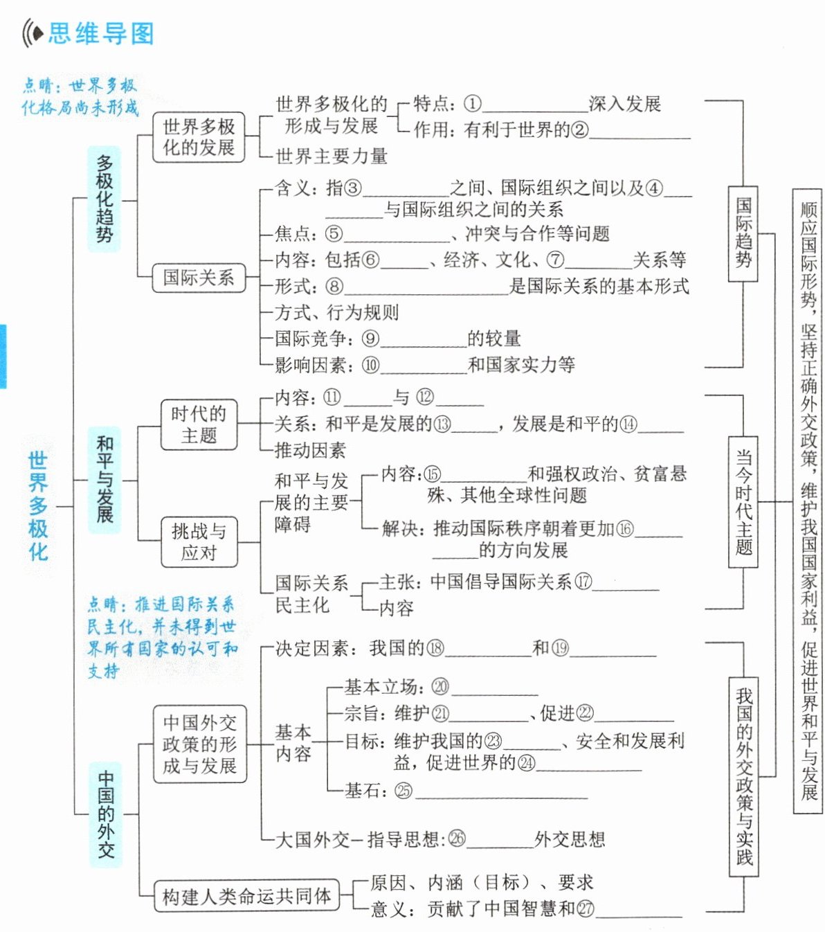 1. 了解世界多极化趋势的形成、发展和意义,明确发展中国家是促进世界和平与发展的重要力量。