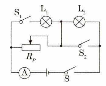 10. [2023.成都]如图所示电路中,电源电压恒为6V,灯泡L1标有“6V ”字样,额定功率字迹不清,灯泡L2标有“4V 1.6W”字样,滑动变阻器的最大阻值为50Ω,电流表量程为0~0.6A。闭合开关S、S1、S2,滑动变阻器滑片位于最右端时,电流表示数为0.42A,不考虑灯泡电阻变化。