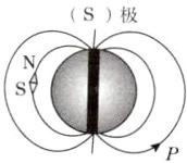 13.[2023.昆明一模]地球是一个天然的大磁体,类似条形磁体。小磁针静止时N、S极的指向如图所示,请用字母在括号内标出地磁场的磁极,并用箭头标出P点的磁感线方向。