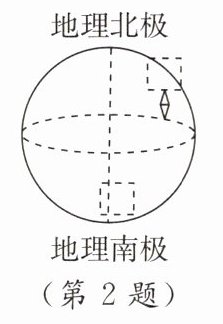 2.[2023.苏州二模]如图所示,位于地球北半球的小磁针处于静止状态,请在虚线方框内标出相应位置的地磁磁极和小磁针静止时的磁极。