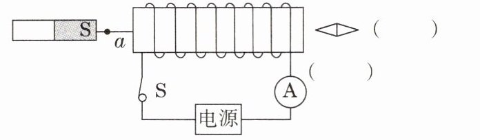 (2)由图可以看出,条形磁体与通电螺线管间的磁感线呈吸引状,说明通电螺线管的左端为N极,右端为S极;在磁体外部,磁感线方向从N极指向S极,因此a点的磁感线方向指向S极;根据安培定则,正面电流方向向上,则电流从电流表下方流入,上方流出,故上方为负接线柱。