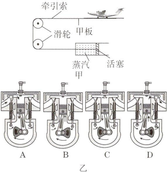 A.图甲中汽缸内的蒸汽体积膨胀,从而推动活塞使舰载机获得牵引力