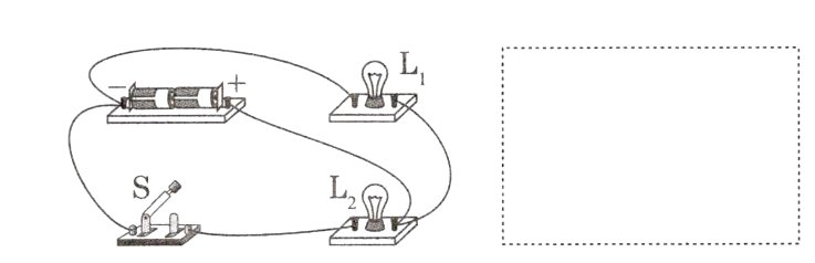 15. [2024.西安期中]观察如图所示的手电筒结构,按下按键时,电路接通。请在虚线框中画出手电筒的电路图。
