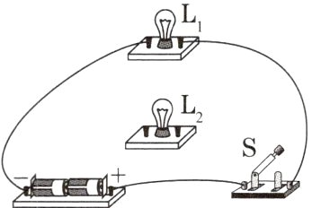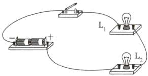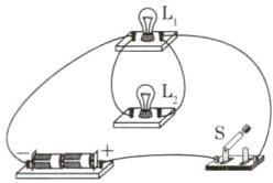 6. [2022.淮安]用笔画线代替导线,连接图中实物电路,使电灯L₁、L₂串联。
