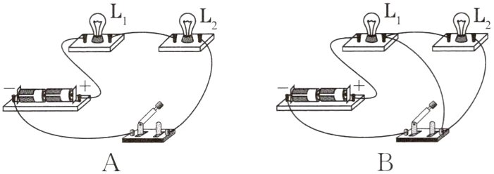 A. 在并联电路中的两个小灯泡不能够同时亮,同时熄灭
