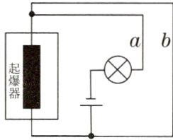 (1)由题知,定时器(时钟)应安装在导线b上。在定时阶段,该导线是通路,起爆器与导线b并联,因此起爆器短路,电流不能通过起爆器。