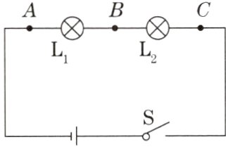 (3)闭合开关S,L₁、L₂两个灯泡都不亮,电路可能为开路或短路;用一根导线接在A、B两点,仍然都不亮,说明L₁、L₂同时短路或L₁短路或L₂开路或L₁、L₂同时开路;又将导线拆下连接在B、C两点,灯L₂亮,说明L₂是完好的,所以故障为L₂灯丝断了。