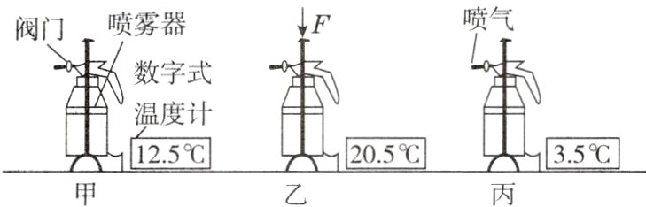 (2)先安装好器材,关闭喷雾器的阀门,用数字温度计测出喷雾器内空气的温度,如图甲,手压活塞快速打气,如图乙。松松观察到的实验现象是______________,这个实验说明:______________________________。