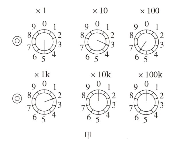6.如图甲所示的电阻箱,此时它的示数是____Ω,它能提供的最大电阻是__________kΩ。如图乙所示的插入式电阻箱,此时它的示数为__________Ω。