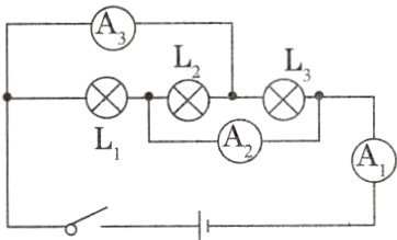 A1、A2、A3的示数分别是0.9A、0.7A、0.5A,则通过L1、L2、L3的电流分别是( )