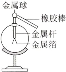 1.如图所示,用毛皮摩擦过的橡胶棒接触不带电的验电器的金属球,验电器的两片金属箔张开一定的角度,接触瞬间的电流方向是____________________(填“从金属箔到橡胶棒”或“从橡胶棒到金属箔”)。