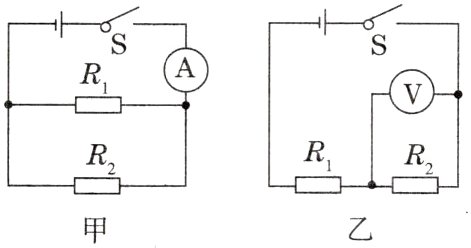 0.2;2 [点拨]定值电阻R₁和R₂并联,电流表测量干路的电流,电流表的示数为0.5A,通过R₁的电流为0.3A,因在并联电路中,干路电流等于各支路电流之和,则通过R₂的电流I₂ = I - I₁ = 0.5A - 0.3A = 0.2A;将R₁和R₂串联在电路中,电源电压为5V,电压表的示数为3V,因串联电路中总电压等于各部分电路两端的电压之和,则R₂两端的电压U₂ = U - U₁ = 5V - 3V = 2V。