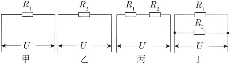 C [点拨]因为电阻并联时阻值最小,串联时阻值最大,且R1<R2,所以电路的总电阻由小到大的顺序是丁、甲、乙、丙。