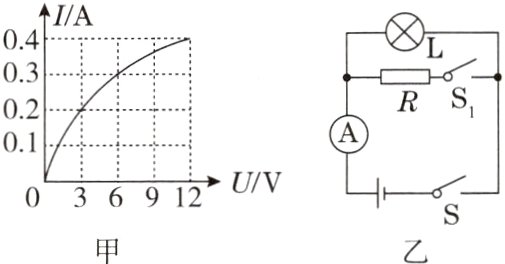 9. [2023.淄博模拟]如图甲所示是小灯泡L的I - U关系图像,将小灯泡L与电阻R接入图乙所示的电路中。只闭合开关S,电流表的示数为0.3A;再闭合开关S1,电流表的示数为0.9A。下列说法正确的是 ( )