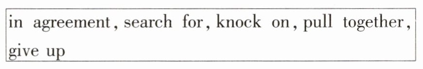 11. to search for 12. in agreement 13. pull together 14. give up 15. knocking on