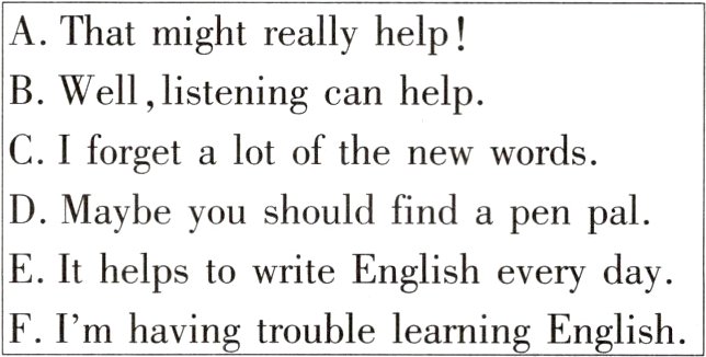 16. I don't know enough words to write well. 17. She often makes mistakes in English. 18. Maybe you should join an English club. 19. She doesn't have a partner to practice English with. 20. I don't know how to improve my reading speed.