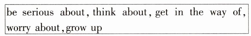 11. am serious about 12. thinking about 13. worry about 14. grow up 15. getting in the way of