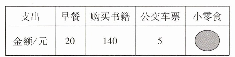 10. 周末,小红带200元去省图书馆,她全天的所有支出如表,小零食支出的金额不小心被涂黑了,如果每包小零食的售价为15元,那么小红可能买了__________包小零食.