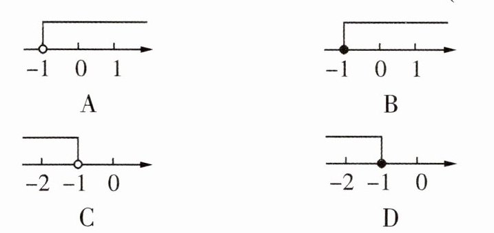 7. 如图,直线$y_1 = x + b$与$y_2 = kx - 1(k\neq0)$相交于点$P$,点$P$的横坐标为$-1$,则关于$x$的不等式$x + b < kx - 1$的解集在数轴上表示正确的是 ( )