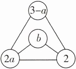 11. 如图,在三角形三个顶点和中心处的每个〇中各填有一个数或式子,如果图中任意三个〇中的式子或数的和均相等,则$a =$_____.