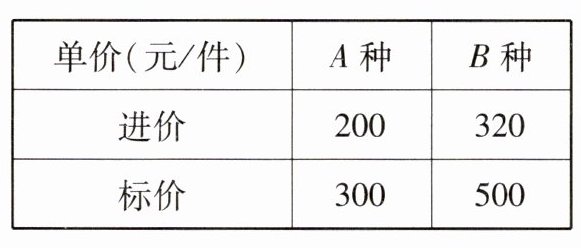 16. 某服装店用6200元购进$A,B$两种新式服装,按标价售出后可获得毛利润3300元. 这两种服装的进价、标价见下表.