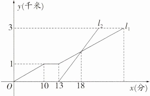 11. 小颖与同学小聪住在同一个小区,某天放学后,小颖从学校步行回家,中途休息片刻后继续以原速度前行,此时小聪骑自行车从学校出发沿小颖步行的路线回家. 如图,l1,l2分别表示小颖与小聪距学校的路程y(千米)与小颖出发时间x(分)之间的函数图象. 根据图象解决下列问题: