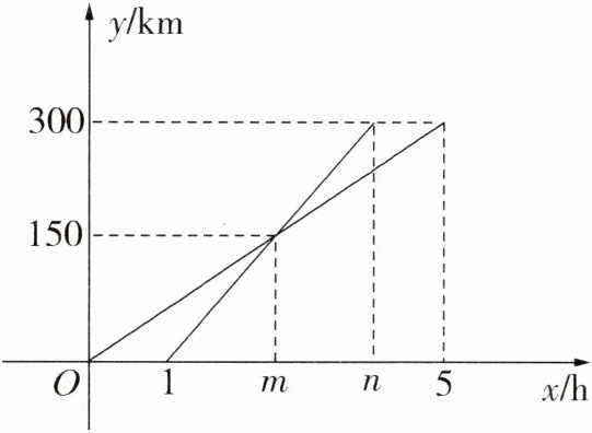 3. 甲、乙两地相距300 km,一辆货车和一辆轿车先后从甲地匀速开往乙地,轿车晚出发1 h,货车和轿车各自与甲地的距离$y$(单位:km)与货车行驶的时间$x$(单位:h)之间的关系如图所示.