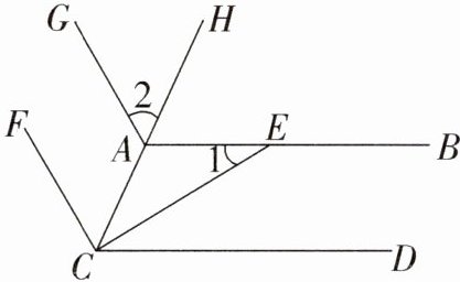 14. 如图,已知AB//CD,E是直线AB上的一点,CE平分∠ACD,射线CF⊥CE,∠1 = 32°.