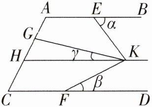 4. 如图,已知AB//CD,E,F,H分别为AB,CD,AC上一点(∠DFK < ∠BEK),KG平分∠EKF,∠AEK + ∠HKE = 180°,令∠BEK = α,∠DFK = β,∠GKH = γ. 则下列结论:①CD//HK;②α + β = 2∠EKG;③α - β = γ;④∠BAC + ∠AGK - ∠GKF + β = 180°. 其中正确的是__________(填序号)