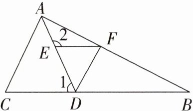 ∴$\angle DFE=\angle BDF$(两直线平行,内错角相等)。