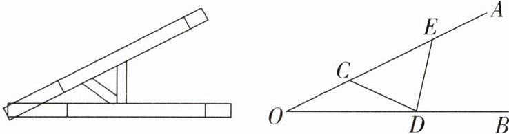 3. 数学文化 “三等分角”大约是在公元前五世纪由古希腊人提出来的,借助如图所示的三等分角仪能三等分任意一个角,这个三等分角仪由两根有槽的棒OA,OB组成,两根棒在O点相连并可绕点O转动,C点固定,OC = CD = DE,点D,E可在槽中滑动,若∠BDE = 75°,则∠DCE的度数是______.
