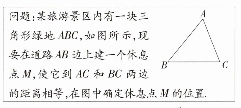 1. 如图所示是一块三角形的草坪,现要在草坪上建一凉亭供大家休息,要使凉亭到草坪三条边的距离相等,凉亭的位置应选在( )