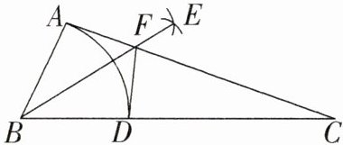 10. 推理能力、运算能力 如图,在△ABC中,AB = 3,BC = 9,以B为圆心,BA为半径画弧交BC于点D,分别以A,D为圆心,以大于$\frac{1}{2}$AD的长为半径画弧交于点E,连接BE交AC于点F,∠BAC = 2∠AFB,求AF的长.