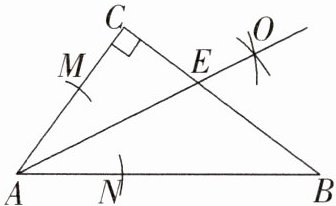 8. 如图,在△ABC中,∠C = 90°,以A为圆心,任意长为半径画弧,分别交AC,AB于点M,N,再分别以M,N为圆心,以大于$\frac{1}{2}$MN的长为半径画弧,两弧交于点O,作射线AO,交BC于点E. 已知CE = 3,BE = 5,求AC的长.