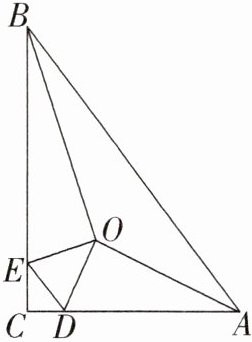 9. 如图,在Rt△ABC中,∠C = 90°,∠ABC和∠BAC的平分线相交于点O,OD⊥OA交AC于点D,OE⊥OB交BC于点E,AC = 6,AB = 10,求△CDE的周长.