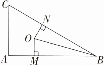 9. 如图,点O在一块直角三角板ABC上(其中∠ABC = 30°),OM⊥AB于点M,ON⊥BC于点N,若OM = ON,则∠ABO = ______度.