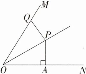 3. 如图,OP平分∠MON,PA⊥ON于点A,点Q是射线OM上的一个动点,若PA = 3,PO = 5,则PQ的最小值为 ( )