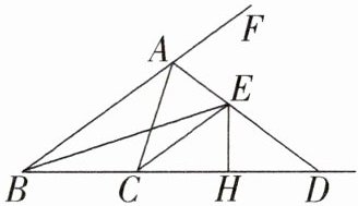 15. 如图,在△ABC中,点D在边BC的延长线上,∠ACB = 106°,∠ABC的平分线BE与外角∠CAF的平分线AD交于点E,过点E作EH⊥BD,垂足为H.