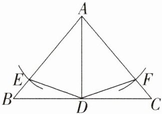 3. 如图,在△ABC中,AB = AC,AD为△ABC的角平分线. 以点A为圆心,AD长为半径画弧,与AB,AC分别交于点E,F,连接DE,DF.