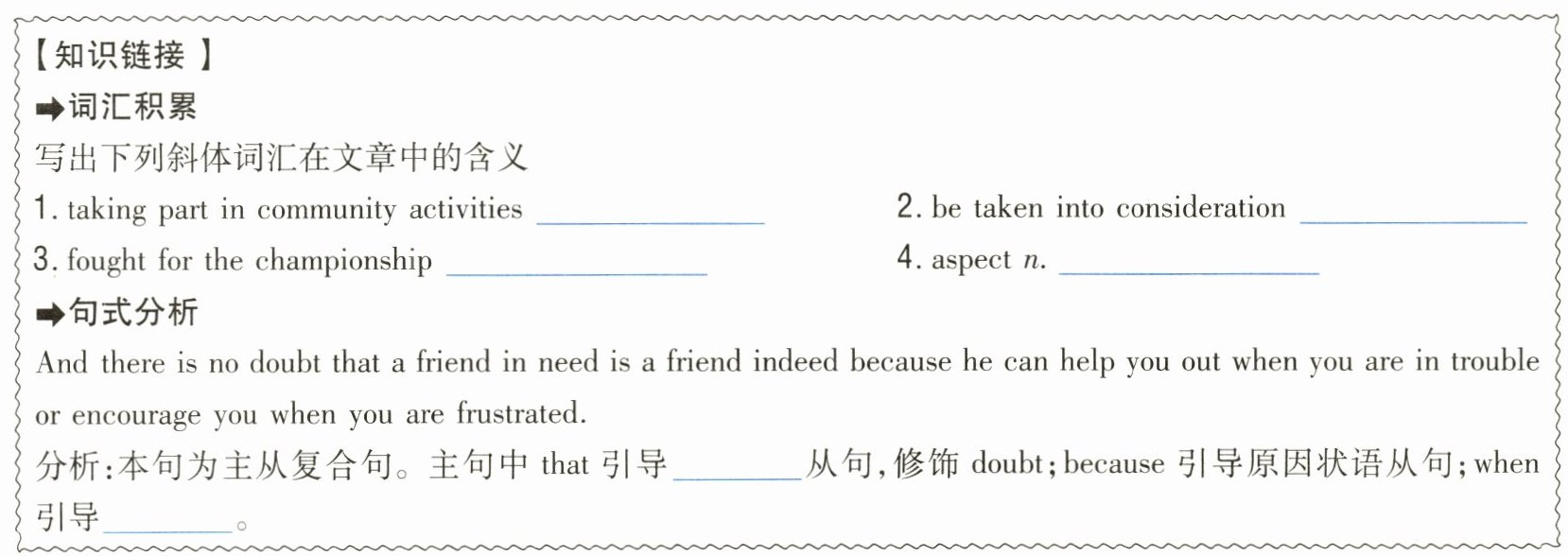 @@词汇积累1.参加社区活动 2.被纳入考虑范围之中 3.争夺冠军4.方面