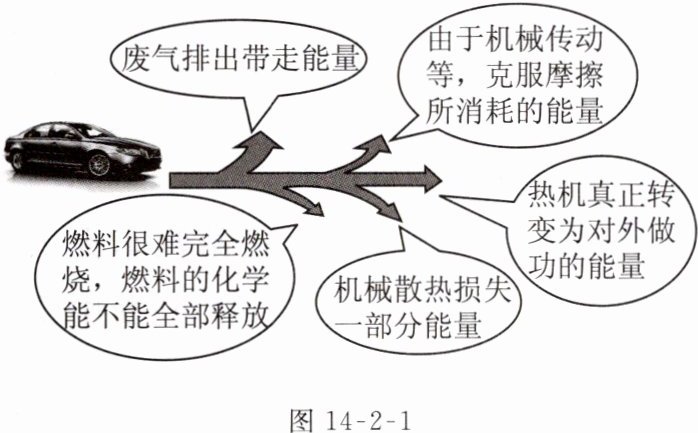 1. 热机中燃料释放能量的主要走向示意图(图14 - 2 - 1)