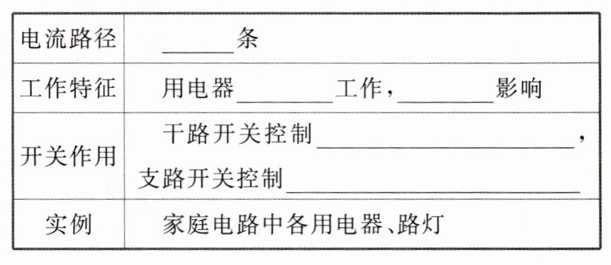 并列 多 独立 互不 整个电路(或所有用电器) 其所在支路的用电器