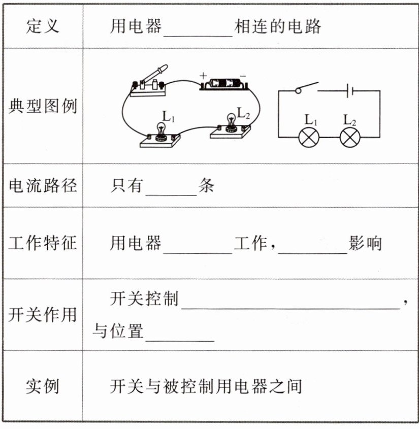 依次 一 同时 相互 整个电路(或所有用电器) 无关