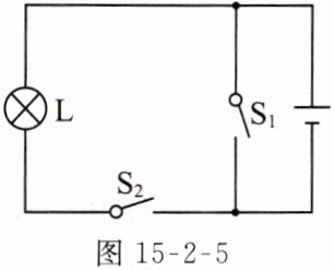 例4 如图15 - 2 - 5所示的电路,当开关S₁、S₂都断开时,电路为______;当开关S₁闭合、S₂断开时,电路为______;当开关S₁、S₂都闭合时,电路为______;当开关S₂闭合、S₁断开时,电路为______。(均选填“通路”“断路”或“短路”)