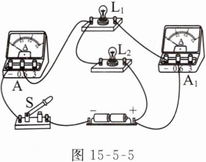例4(2023营口校级模拟)如图15 - 5 - 5所示的实验电路,闭合开关S后,电流表A的示数为0.5 A,电流表$A_1$的示数为0.3 A。下列说法中正确的是( )