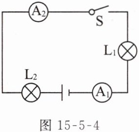 例3(2023沈阳沈河区校级期末)在如图15 - 5 - 4所示电路中,当开关S闭合时,电流表$A_1$的示数是0.22 A,此时流过$L_2$的电流为______A,电流表$A_2$的示数为______A。